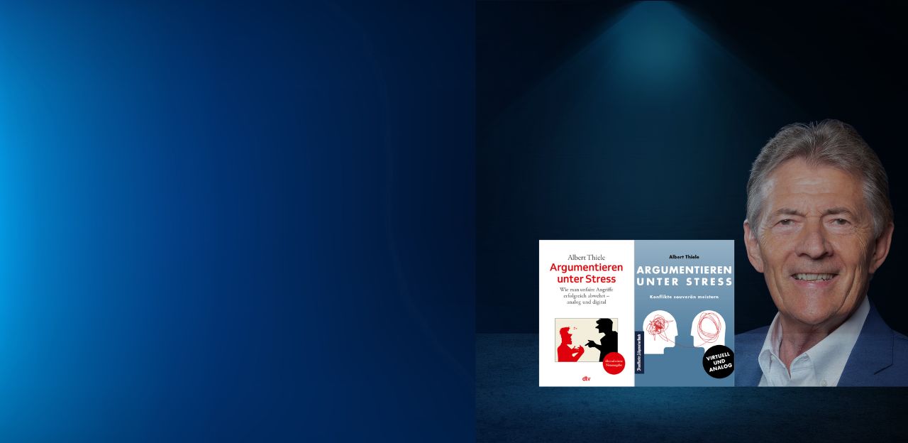 Albert Thiele ist Kommunikationstrainer für Führungskräfte, Executive Coach und Bestsellerautor. Seit über 30 Jahren unterstützt er Fach- und Führungskräfte dabei, sicherer, überzeugender und wirkungsvoller aufzutreten – in Meetings, Präsentationen, Konfliktsituationen und medialen Formaten. Die FAZ zählt ihn zu den renommiertesten Dialektik- und Präsentationstrainern im deutschsprachigen Raum.
